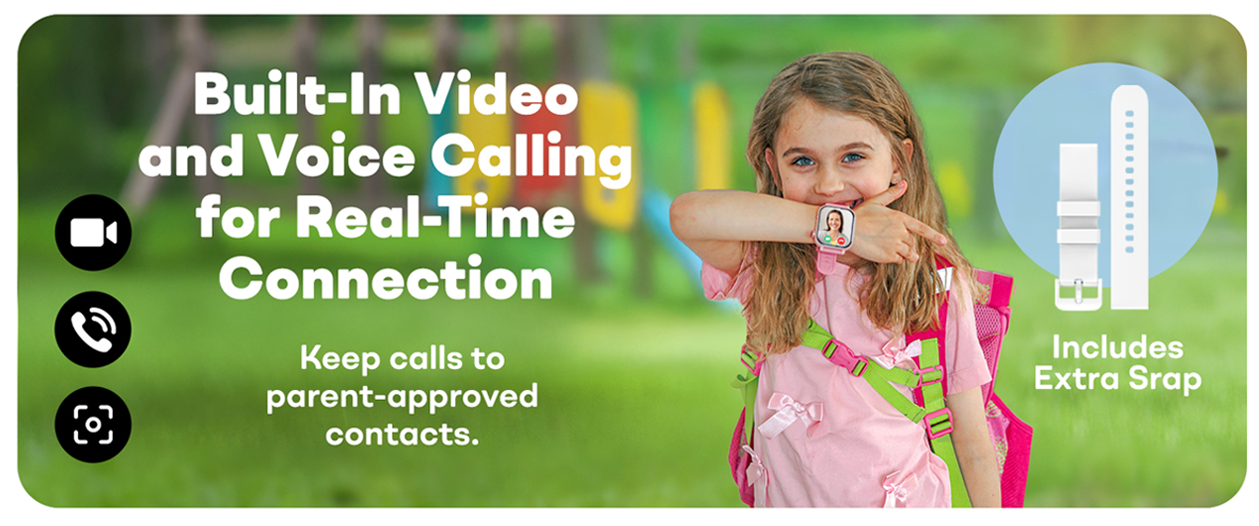 The Kipy Watch Plus models allow you to make video calls with your kid. This lets you see where they are and what they are doing, all while sharing those precious moments.