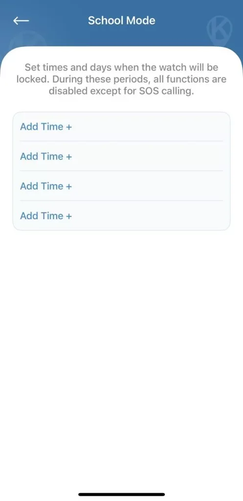 School Mode limits watch’s functions to only the SOS button, ensuring no distractions during class. You’re in complete control of enabling this mode whenever needed.